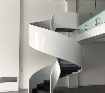 پله پیچ دومحور باکس نوعی پله مارپیچ است که در آن دو محور اصلی در دو طرف پله، نقش تحملکننده وزن و ساختار را دارند. در این نوع پلهها، وزن پلهها و نردهها به طور کامل توسط محورها تحمل میشود. این پلهها هم استحکام بالایی دارند و هم ظاهر مدرن و شکیلی دارند.